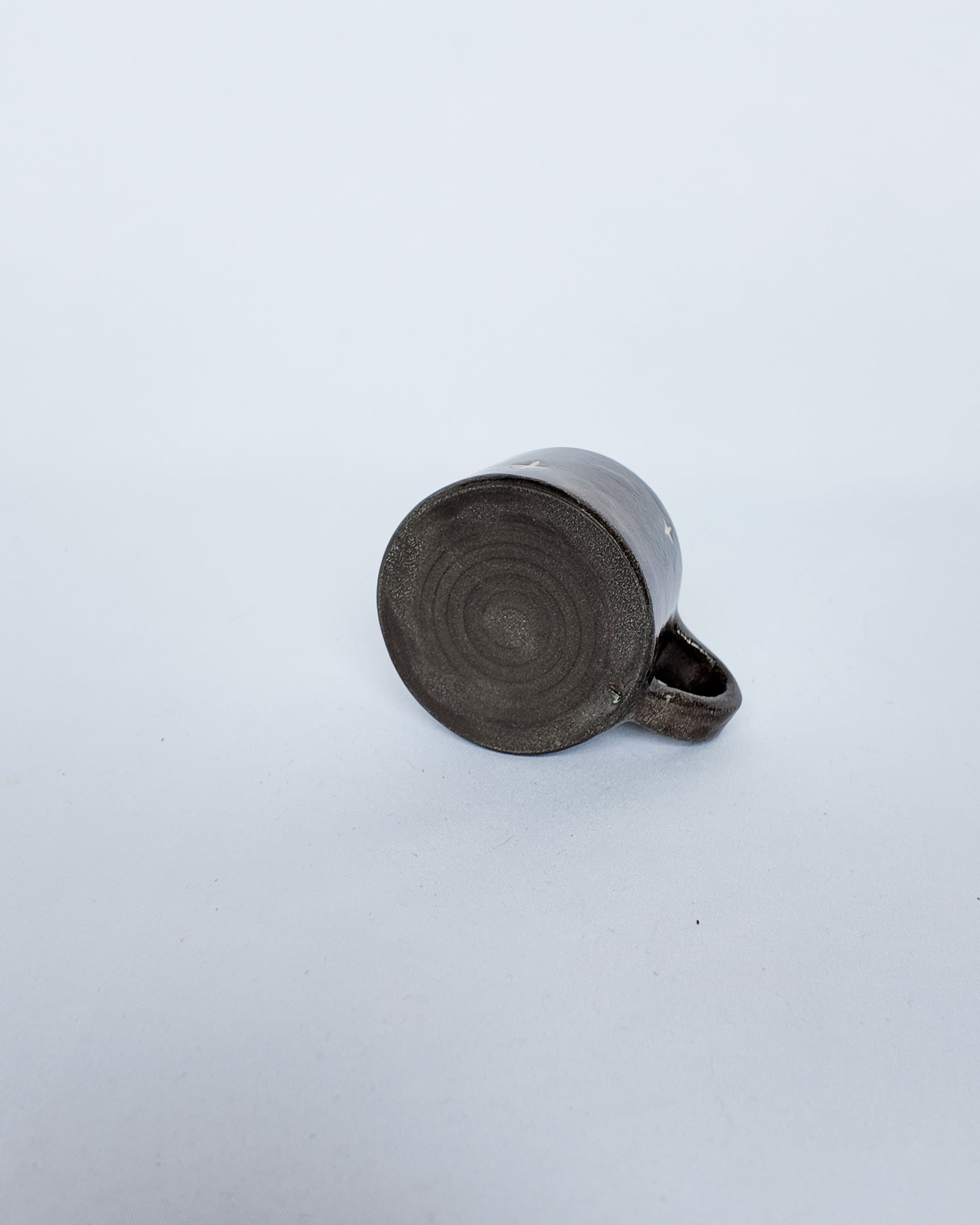 The cutest little espresso cup with an inlaid mini star design. Made from a dark brown clay with a glossy transparent glaze.