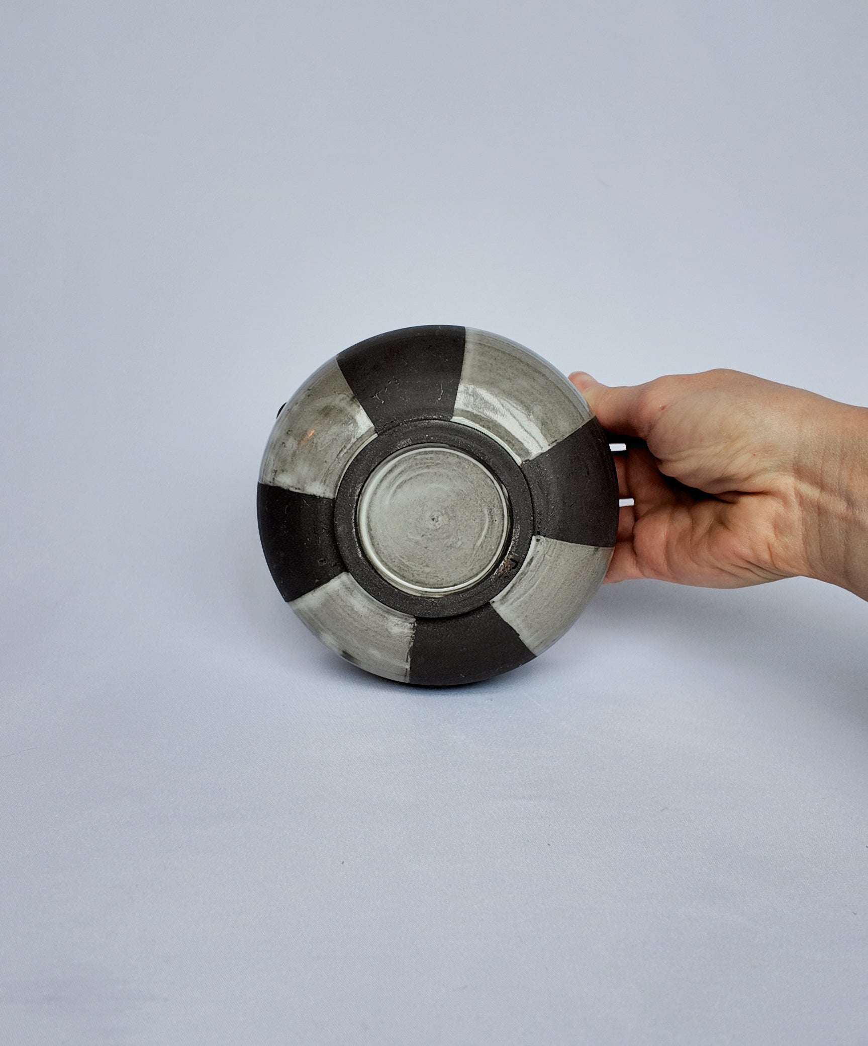 Hella elegant matcha bowl for all your matcha needs. Made from dark brown clay with a glossy white glaze with a checkered pattern.