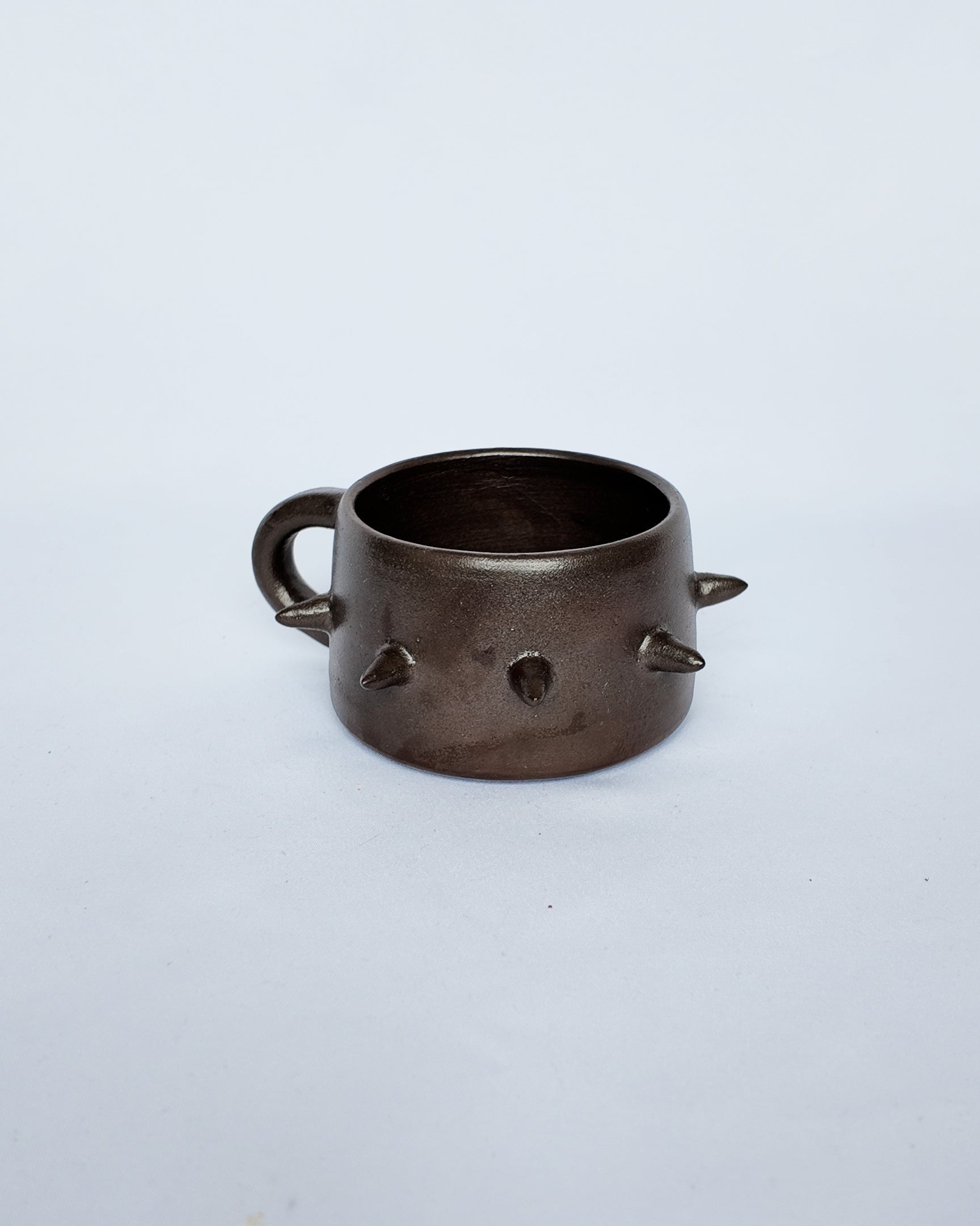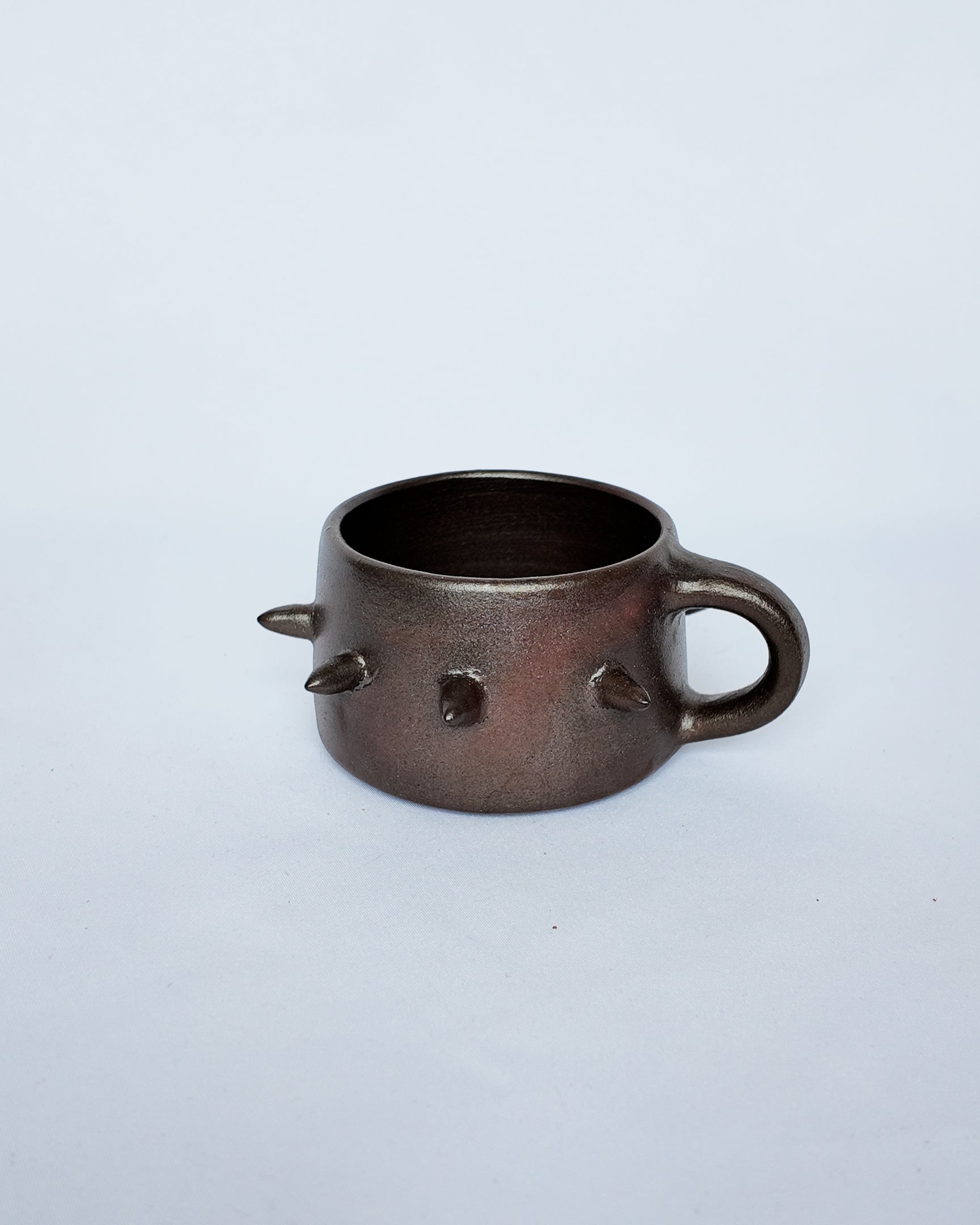 Perfect goth tea or coffee mug. But with SPIKES! Made from dark brown clay with a dark brown matte glaze.